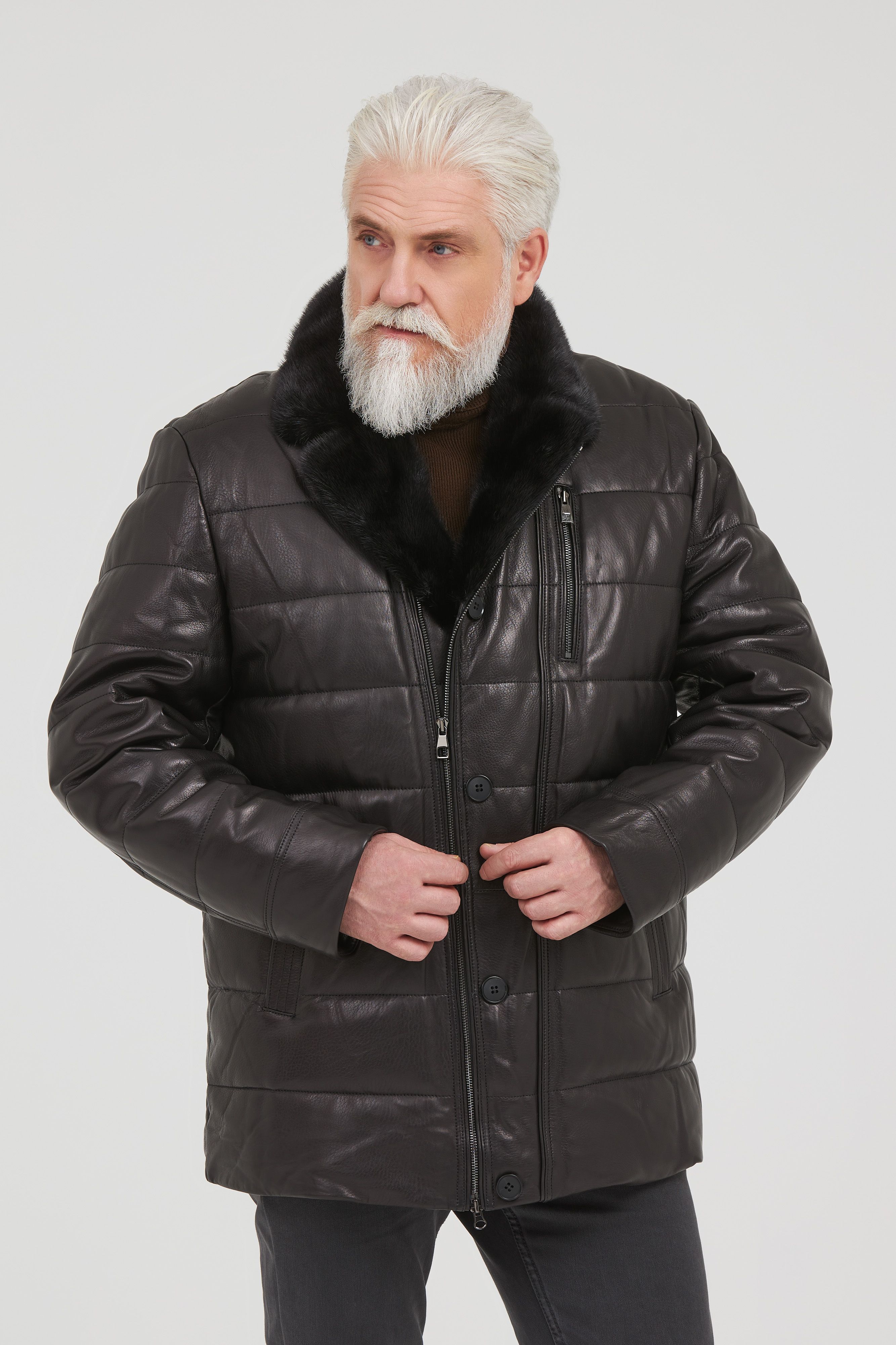 Пуховик из кожи ворот норка